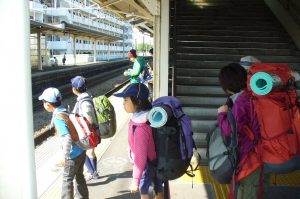 スカウトたちは、スカウトと、その家族に分かれて、宝物を探しながら浅間さんを登ってきました。